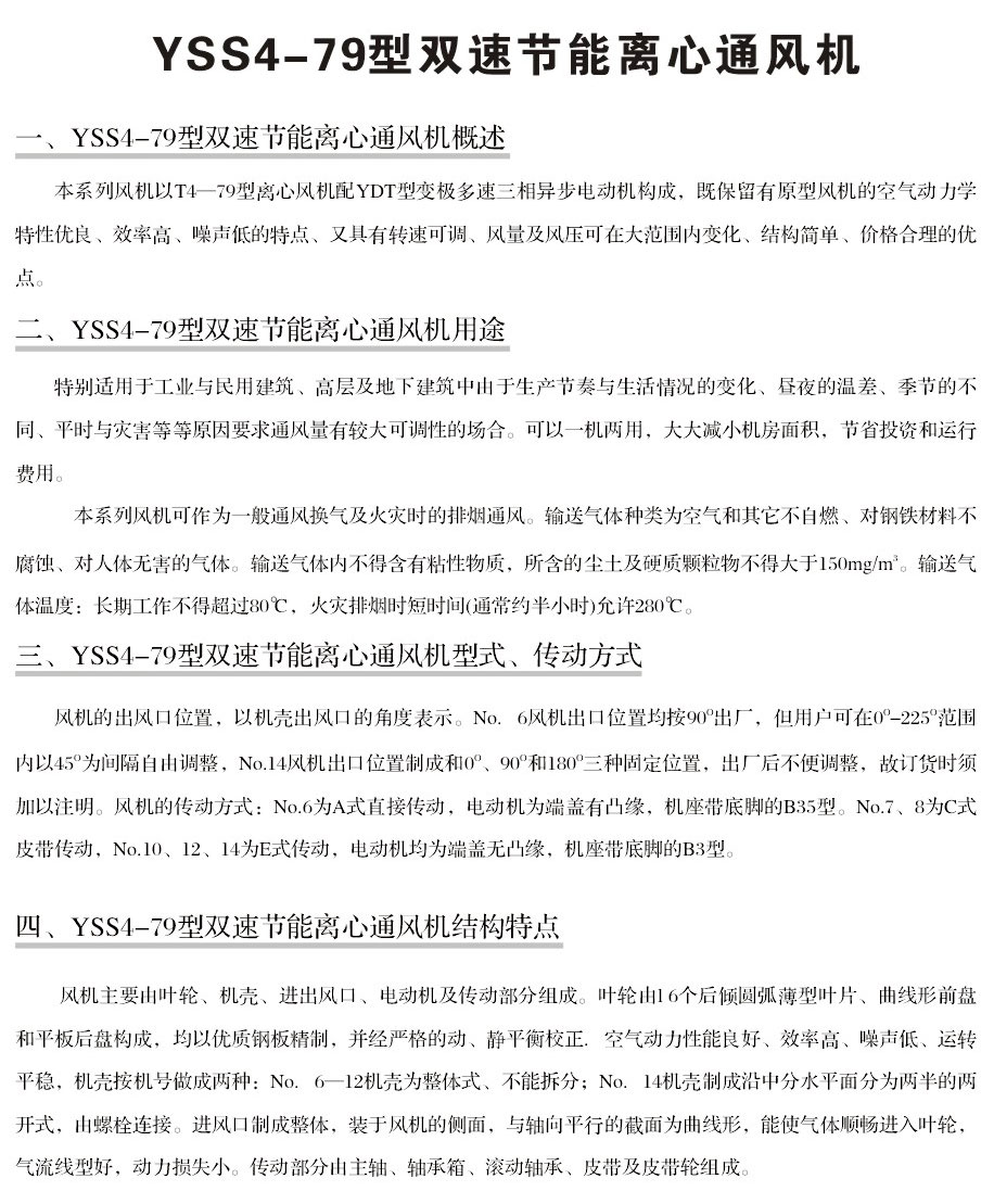 > YSS4-79型雙速節(jié)能離心通風(fēng)機(jī)