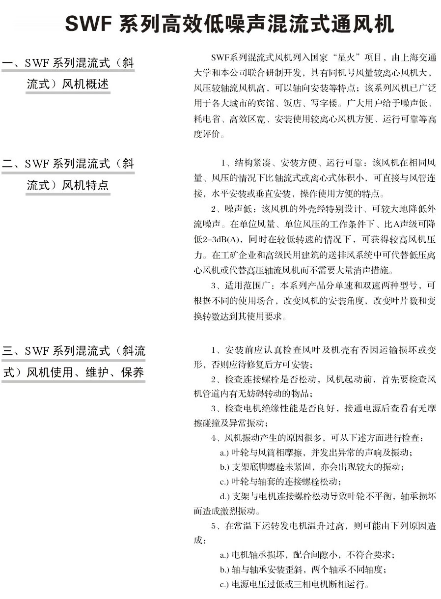 > SWF系列高效低噪聲混流式通風(fēng)機(jī)
